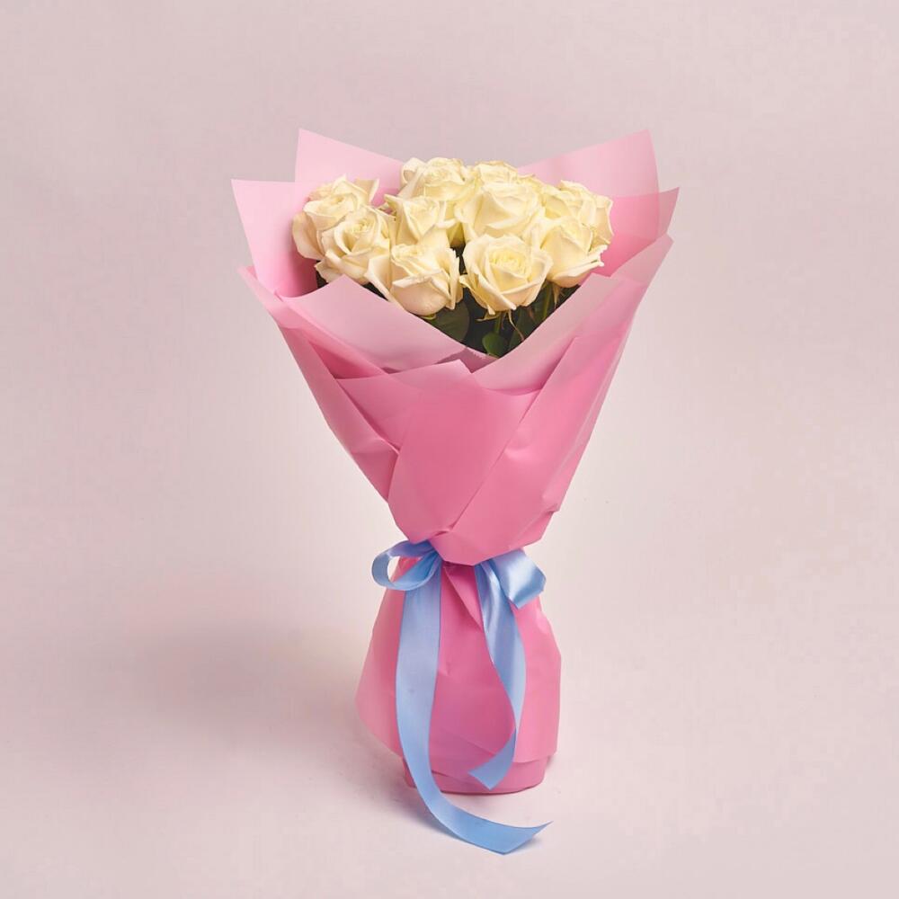 троянда біла – 15 шт. оформлення букета в упаковка – 1 шт.