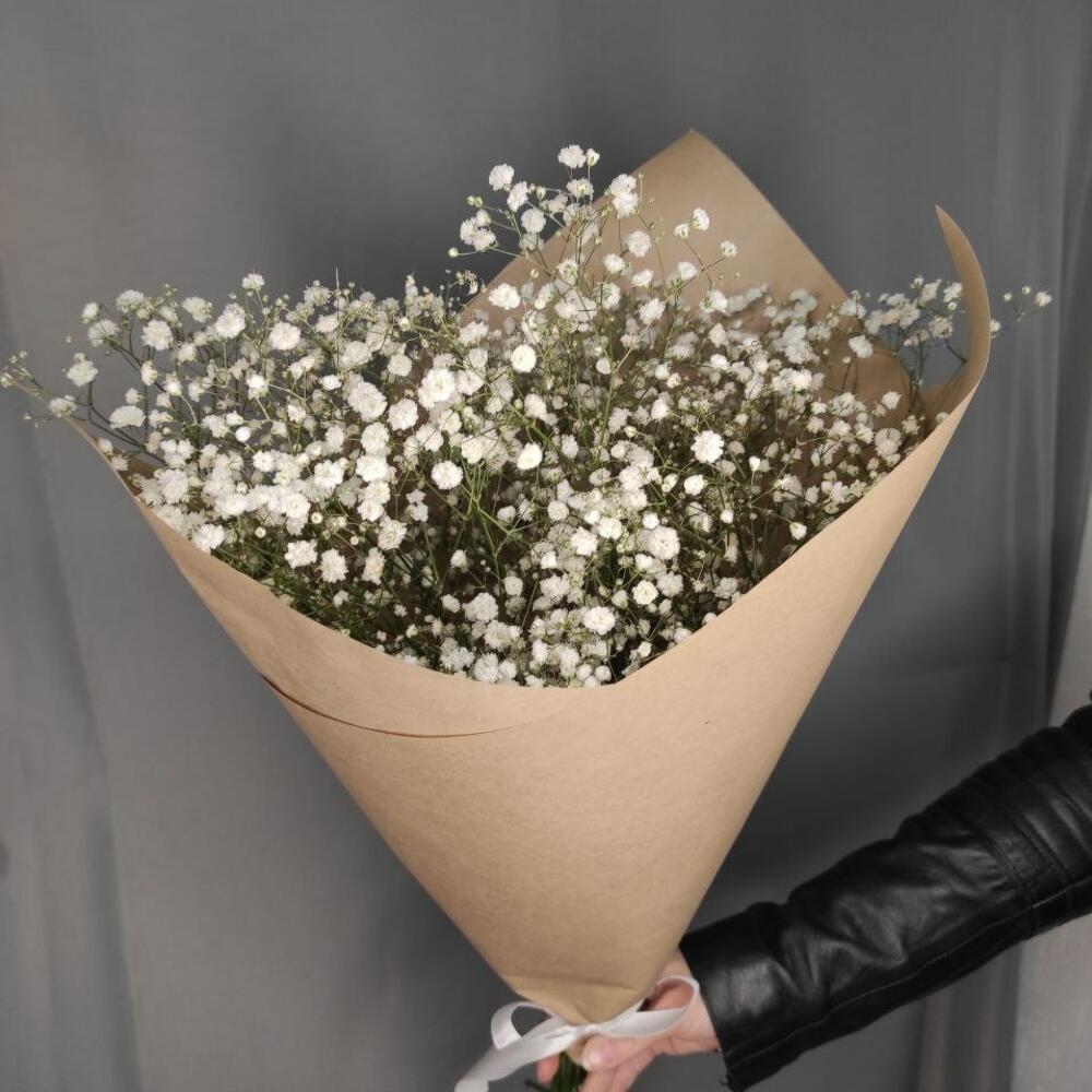 гипсофила белая – 5 шт.крафтовая бумага – 1 шт.Лента атласная – 1 шт.