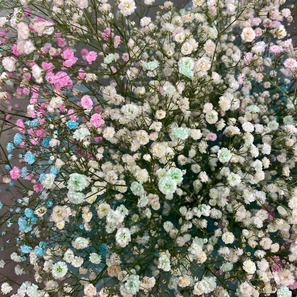 гипсофила радужная – 17 шт.Упаковка дизайнерская – 2 шт.Лента атласная – 2 шт.