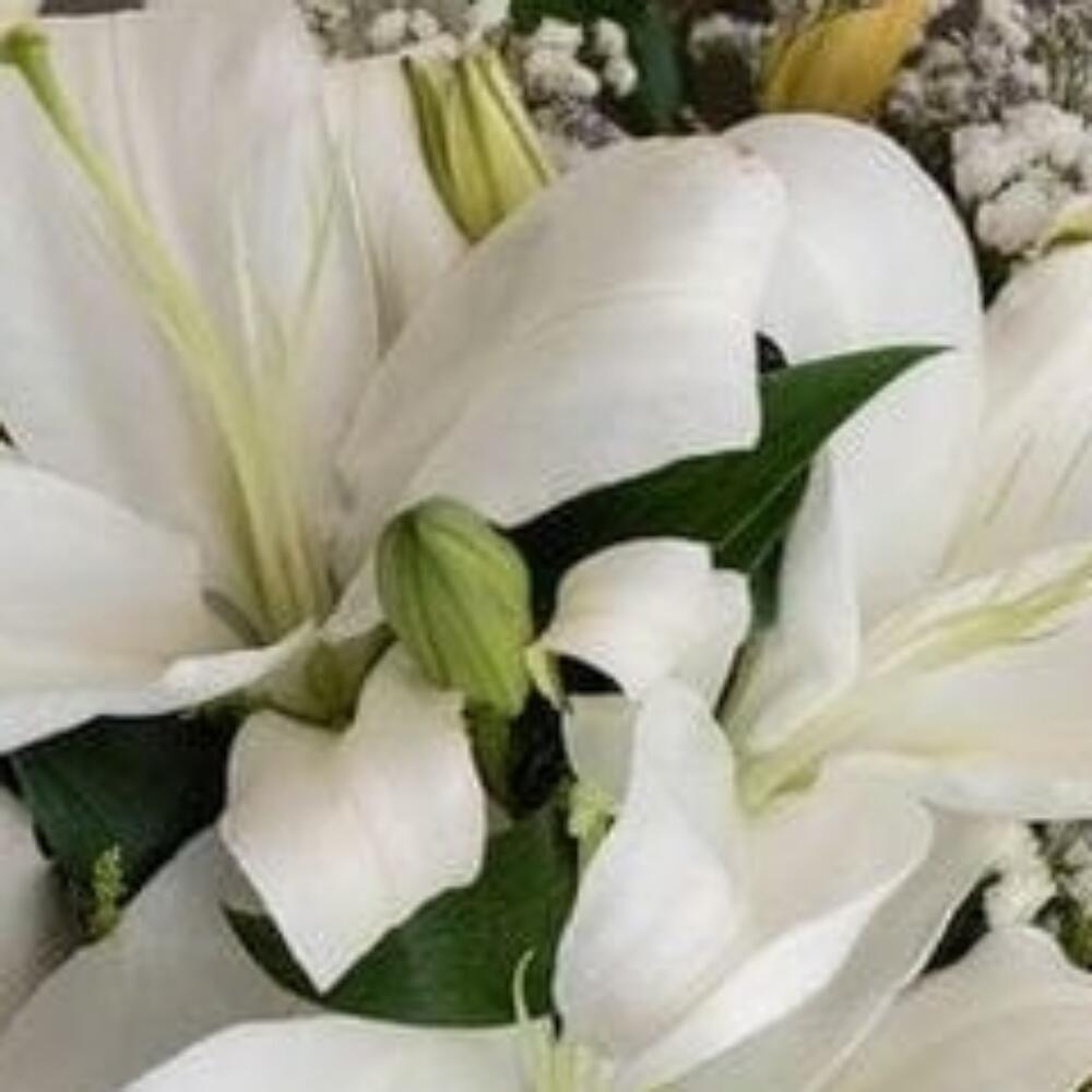 Букет из лилий и гипсофилы