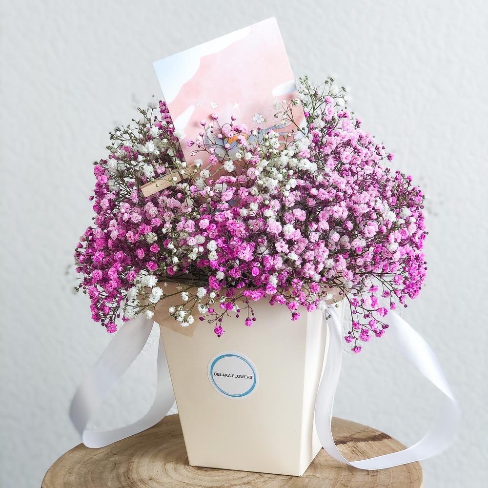 Гипсофила белая в коробке для мамы