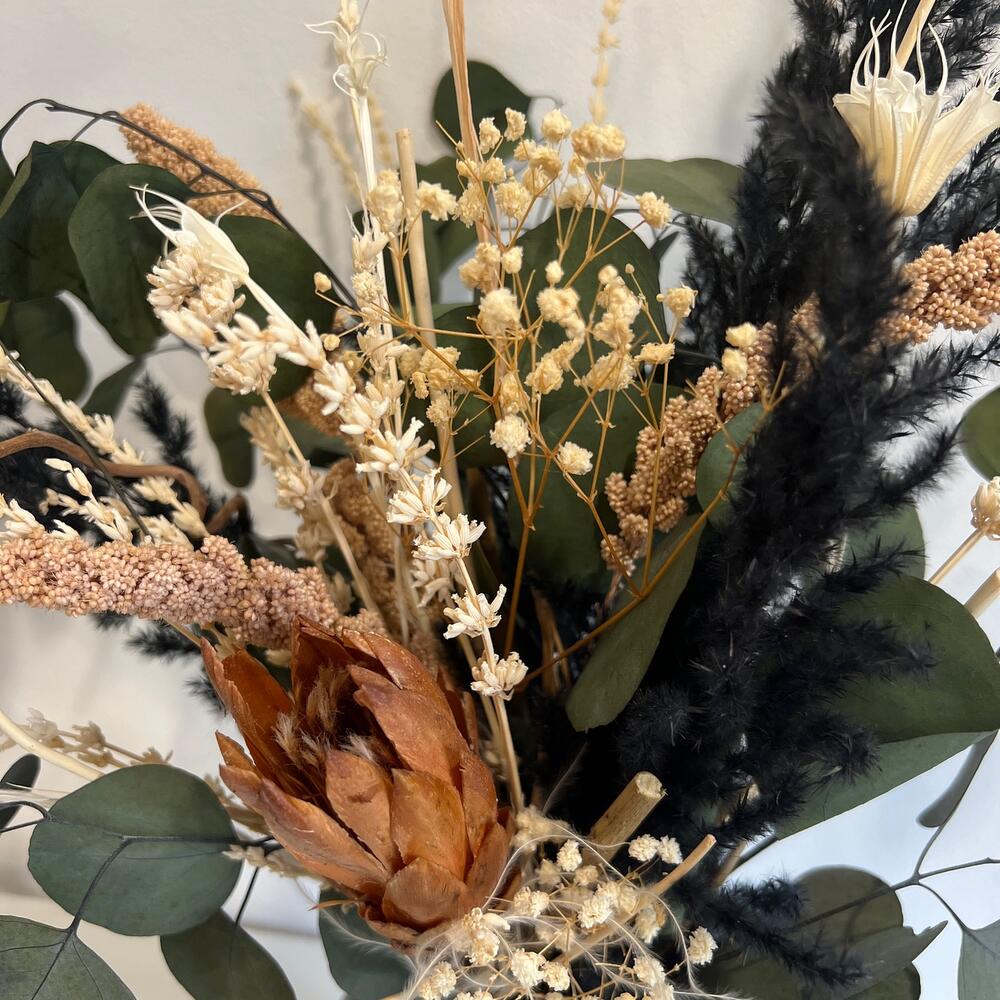 Интерьерная композиция из стабилизированных цветов и сухоцветов
