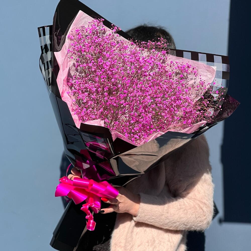 Гипсофила – 7 шт. Упаковка дизайнерская – 7 шт. Лента – 1 шт.