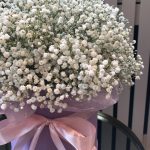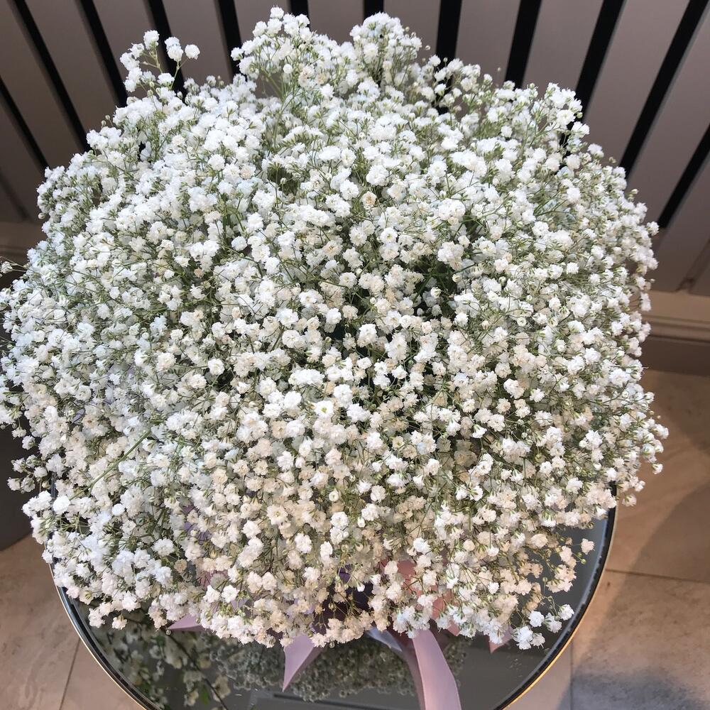 “Сиреневый туман” – композиция из гипсофилы в шляпной коробке