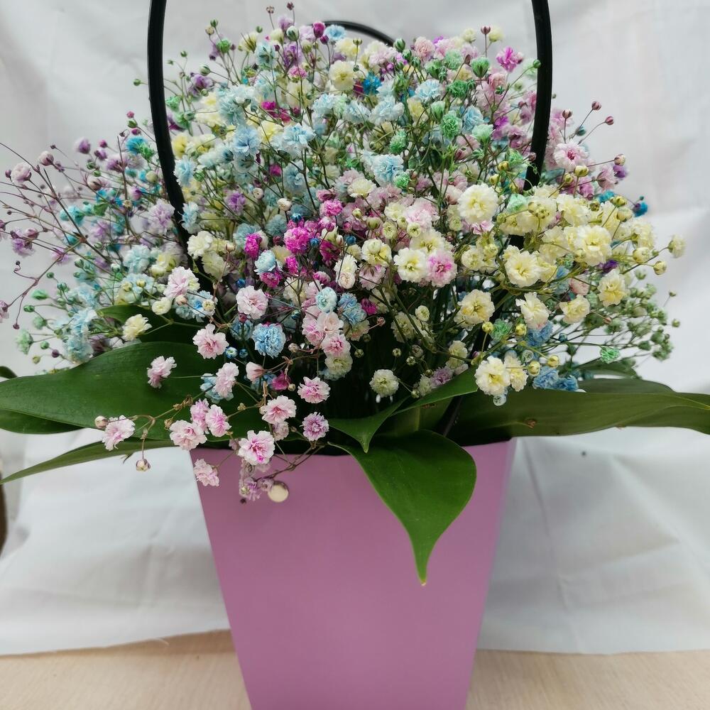 гипсофила радужная – 7 шт.Сумочка картонная – 1 шт.Оазис флористический – 1 шт.