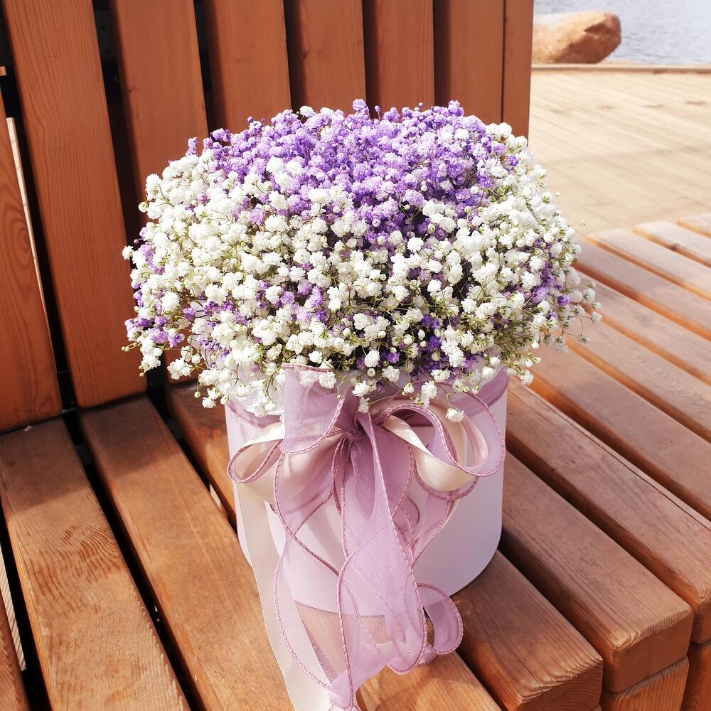 "Атлас☁️" - цветочная композиция с зефиром в деревянном ящике