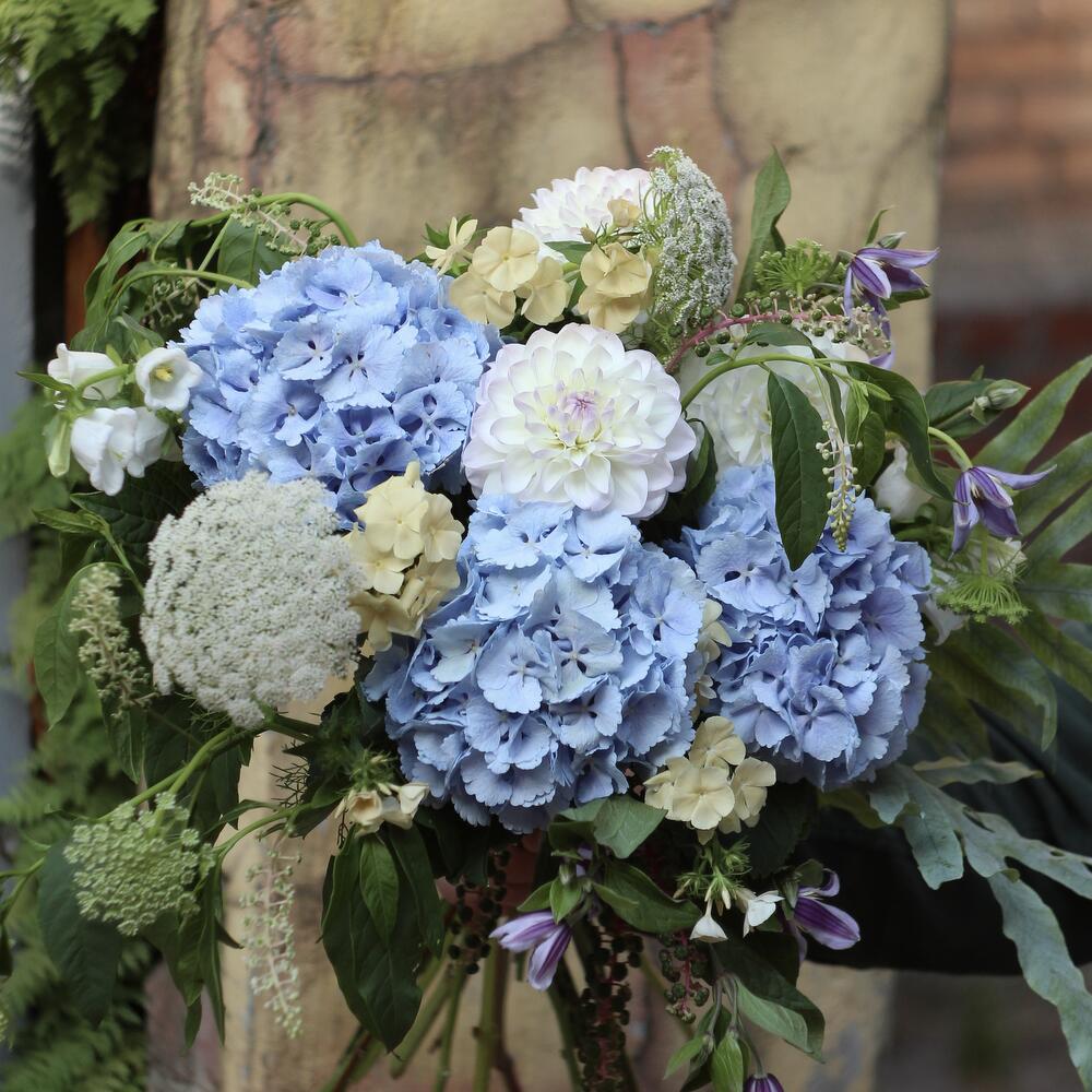 Гортензия – 3 шт.Георгина – 3 шт.флебодиум – 2 шт.Флокс – 3 шт.Амми – 2 шт.Клематис – 2 шт.Колокольчик – 2 шт.Фитолакка – 3 шт.