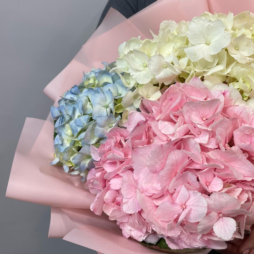 Гортензия – 3 шт.Корейская упаковка – 1 шт.бант атласный – 1 шт.