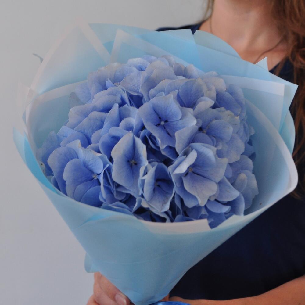 Лента атласная – 1 шт.Гортензия голубая – 1 шт.Пленка матовая – 4 шт.