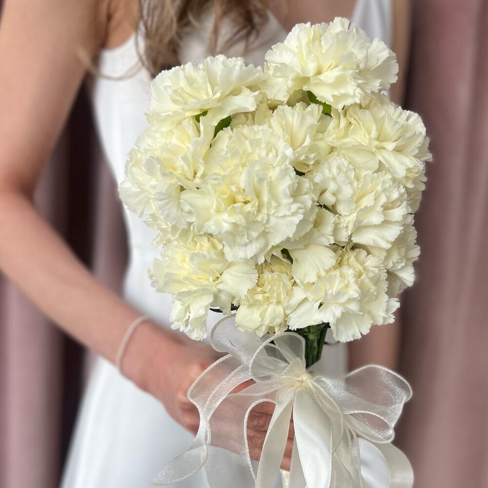 Диантус – 15 шт.Органза – 1 шт.Атласная лента – 2 шт.