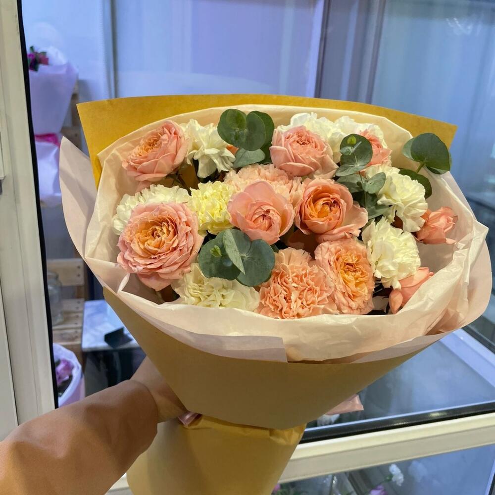 Гвоздики, Кустовые розы, Лизиантусы, Пионовидные розы, Розы