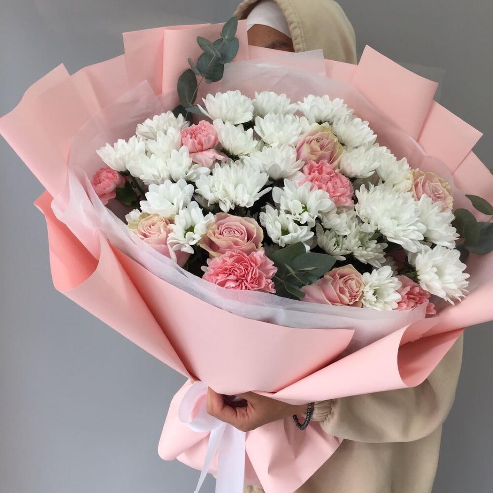Гвоздики, Кустовые розы, Пионовидные розы, Розы