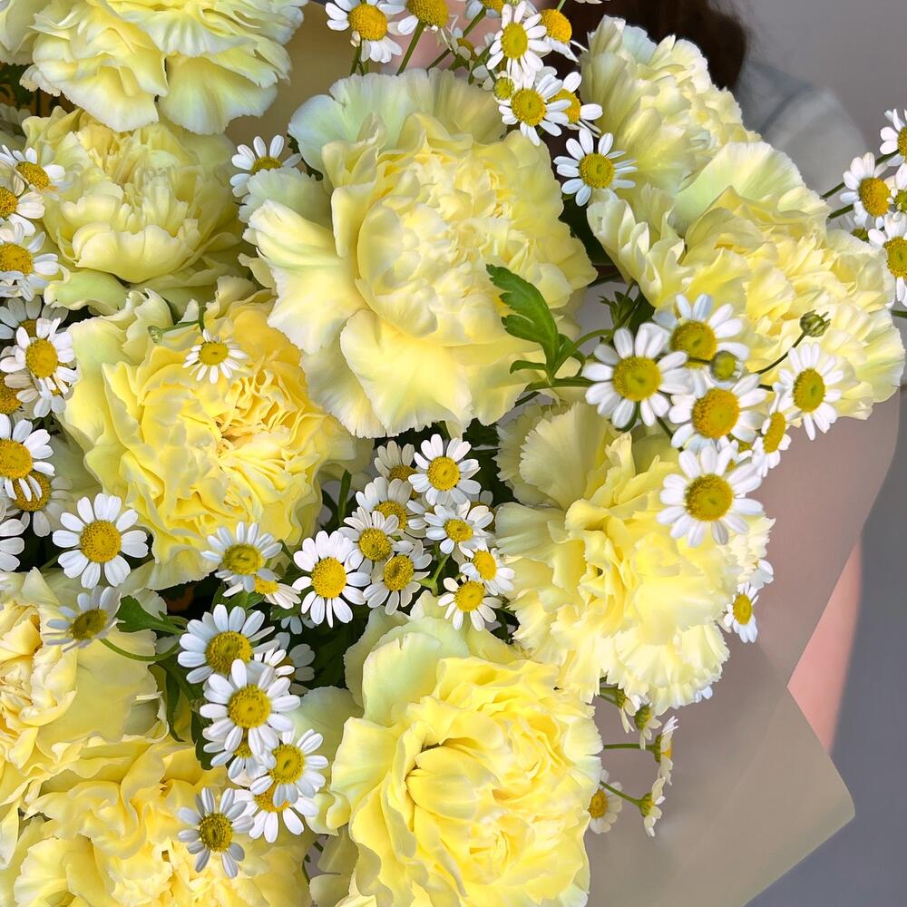 Лента – 1 шт.Матрикария – 6 шт.Дизайнерская упаковка – 1 шт.диантус lemon – 15 шт.