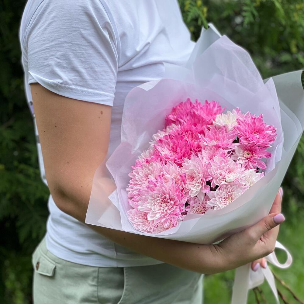 Пленка матовая – 1 шт.Хризантема крашеная – 5 шт.Тишью белое – 1 шт.