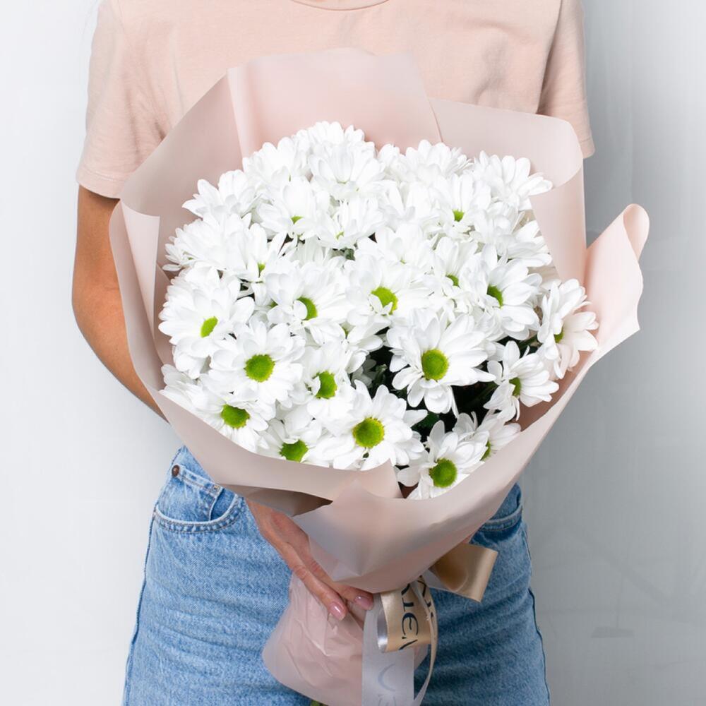 Хризантема Ромашковая – 9 шт. Упаковка дизайнерская – 1 шт. Открыточка с вашими пожеланиями – 1 шт.