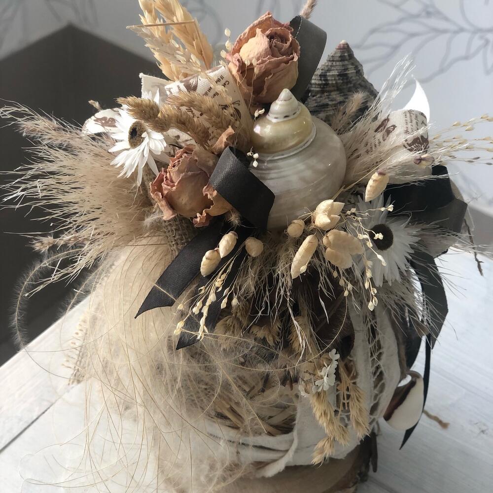 декоративные ленты – 2 шт.букет из сухоцветов – 3 шт.Палочки корицы – 3 шт.набор ракушек – 1 шт.ковыль пучок сухоцвет – 3 шт.Лента хлопок – 3 шт.бриза пучок – 2 шт.Гелихризум – 3 шт.Наполнитель стружка – 2 шт.спил дерева – 1 шт.