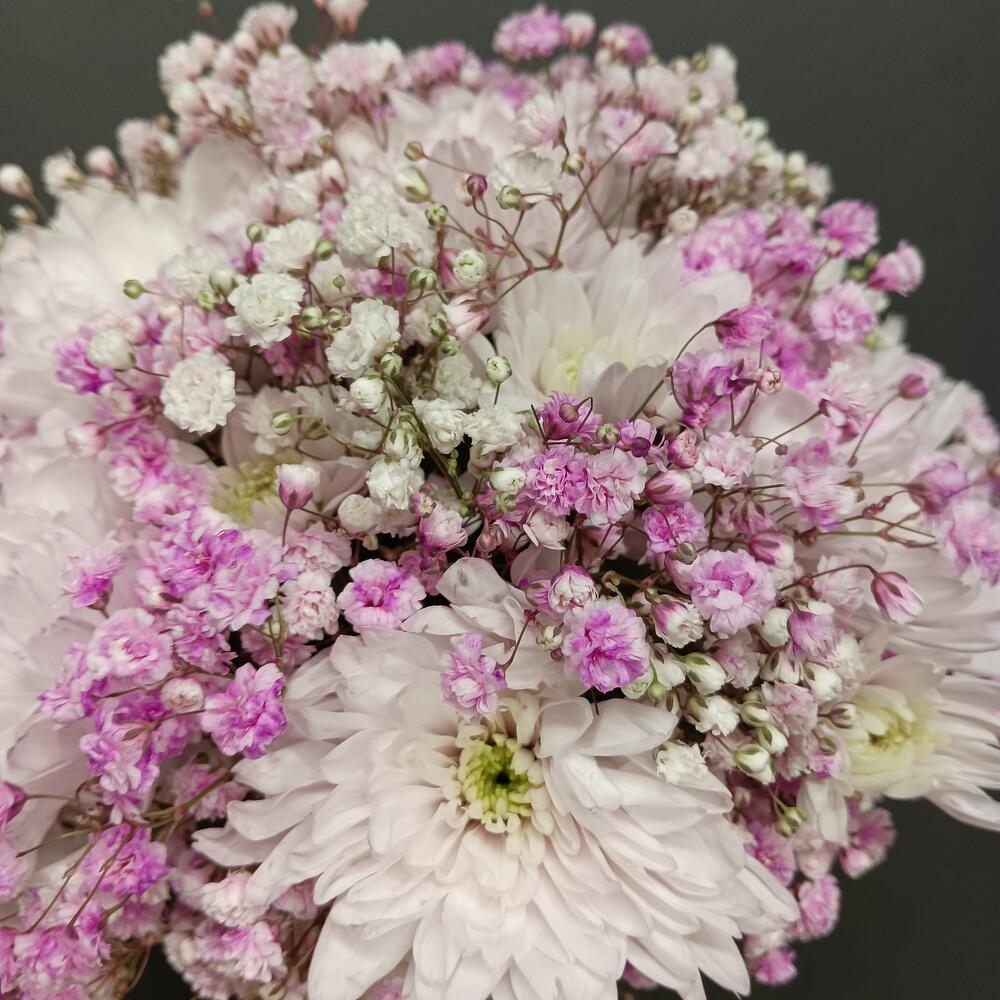 Композиция из гипсофилы с кустовой хризантемой