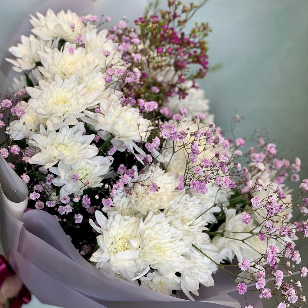 Букет хризантем в нежной упаковке
