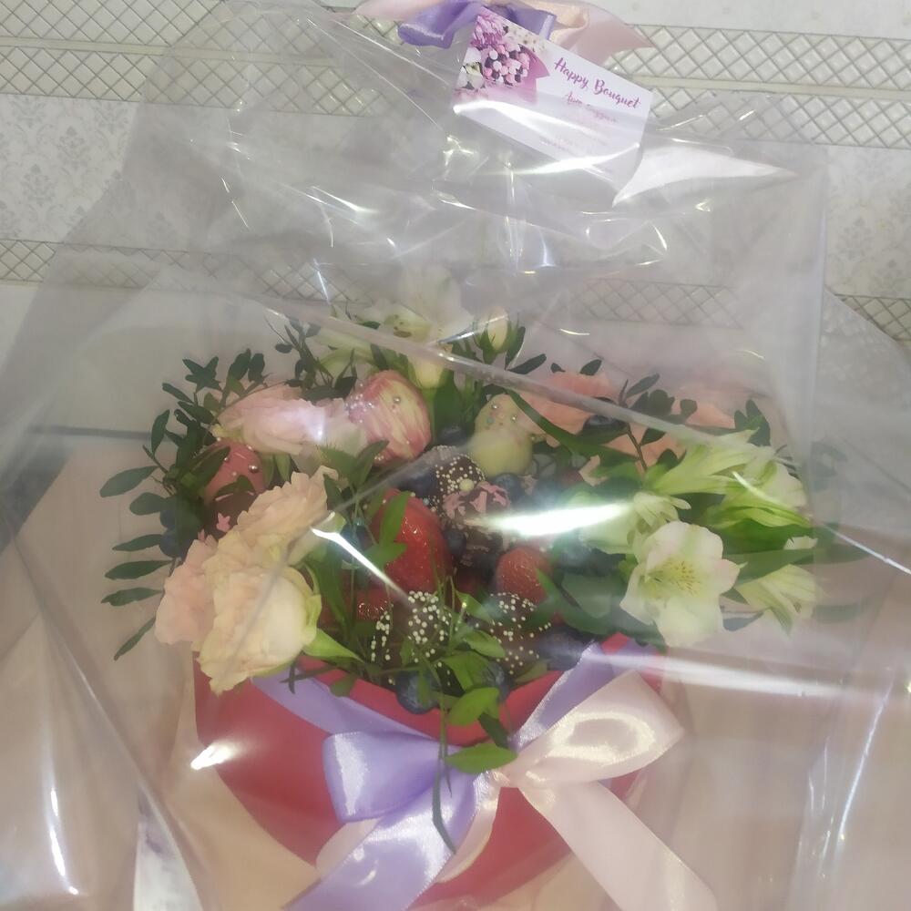 Вкусный букет "Яркая мечта" Клубника в шоколаде и розы