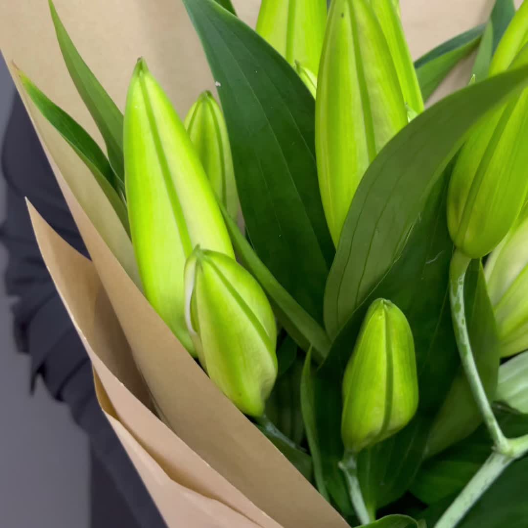 5 белых премиум лилий в крафте
