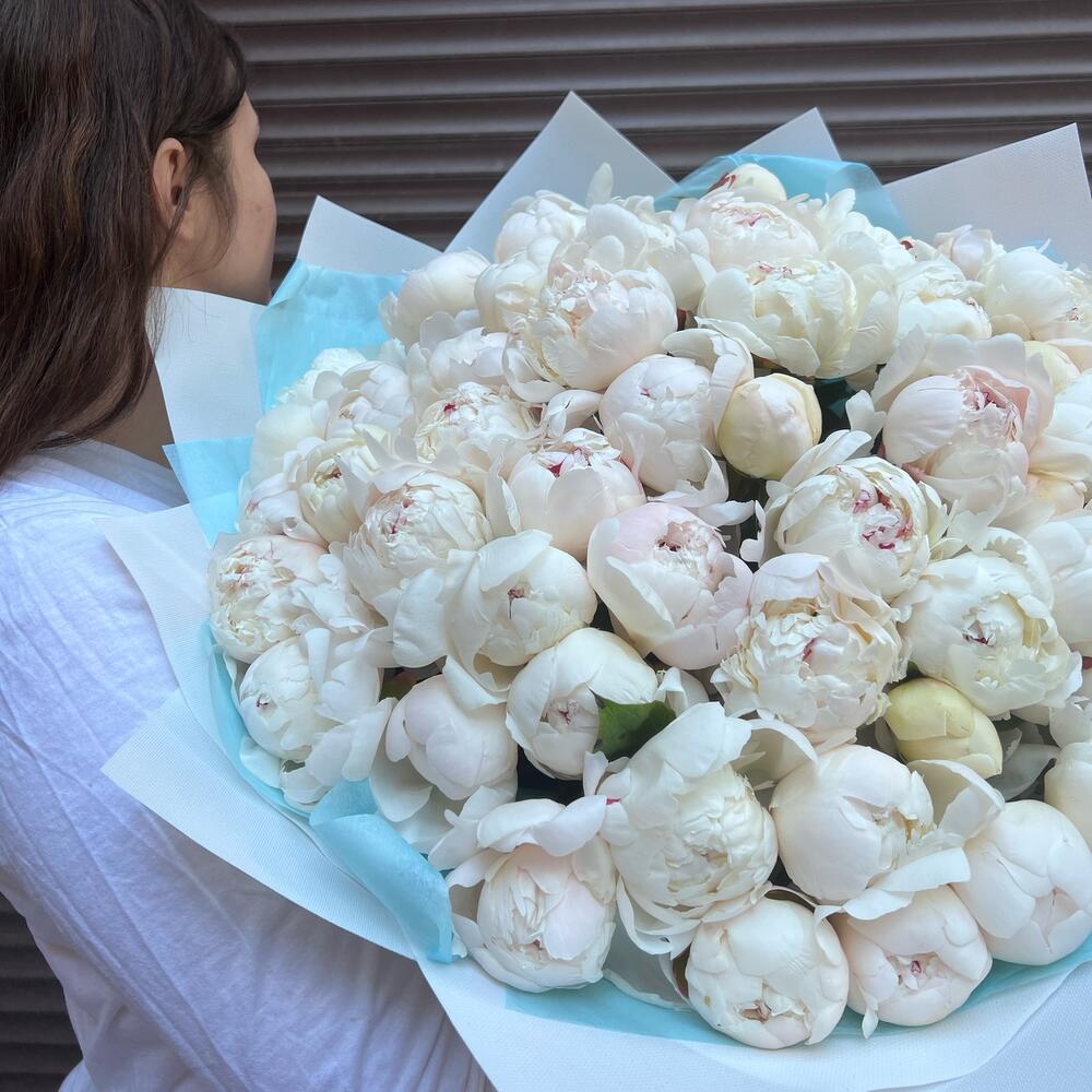 51 пион белый Вип букет (моно 079)