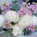 Цветы в коробке с пионами, розой и эустомой «Май»