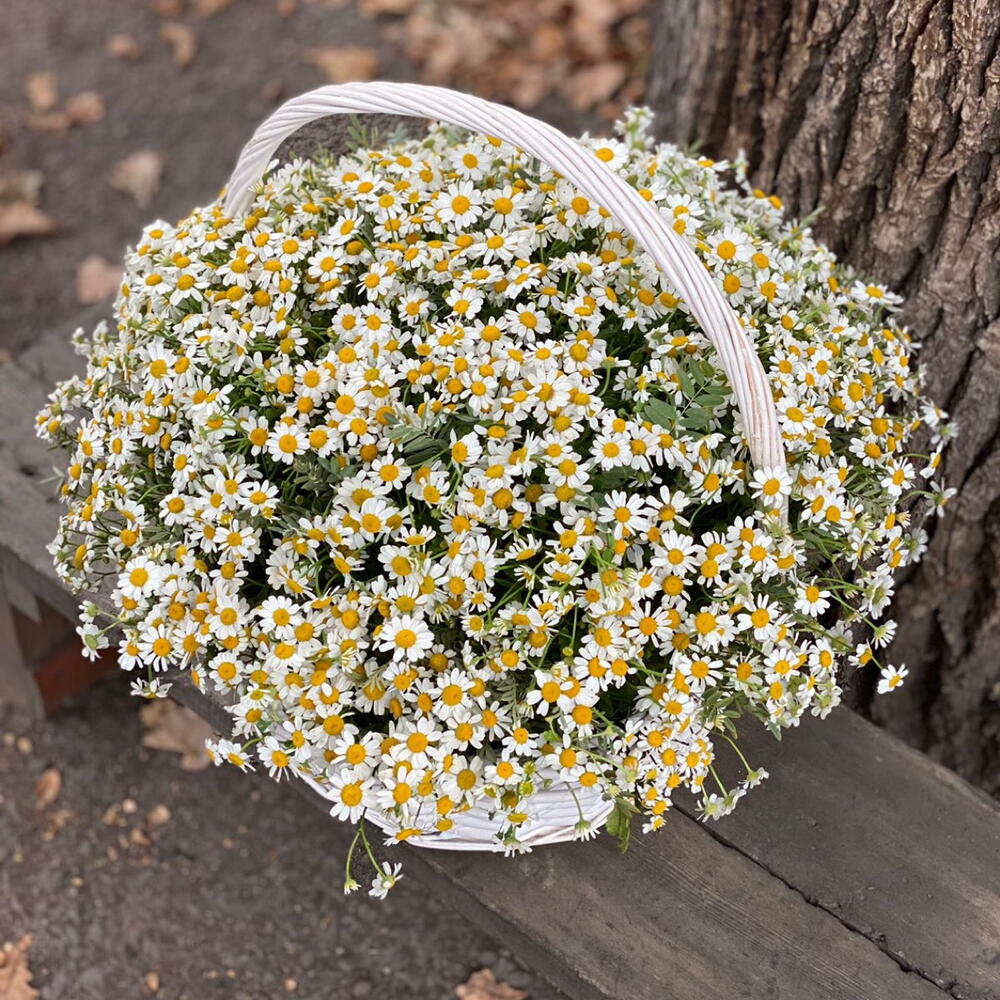 Корзина плетеная – 1 шт. полевые ромашки – 25 шт.