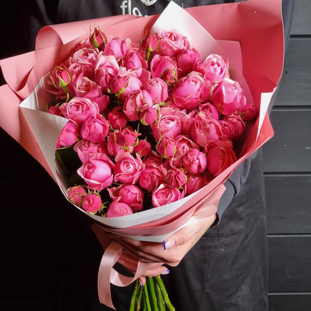 Лента атласная – 1 шт.Дизайнерская упаковка – 1 шт.роза силва пинк пионовидная – 11 шт.