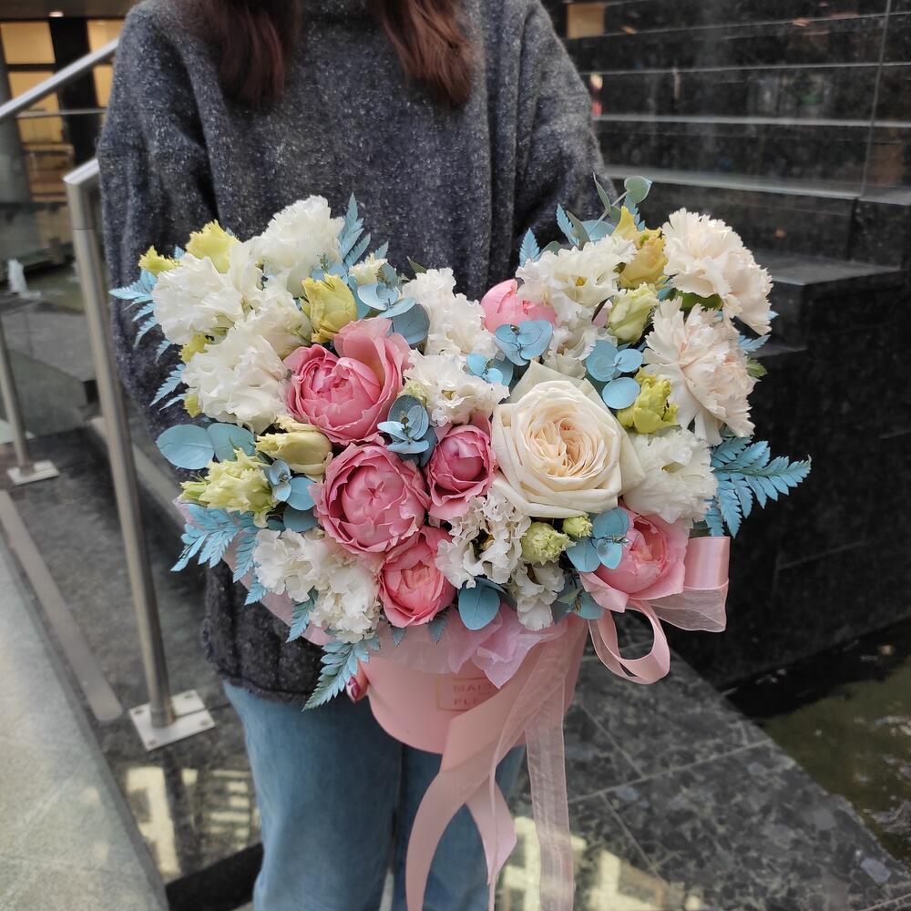 “В твоих глазах”: нежная шляпная коробка с французскими розами