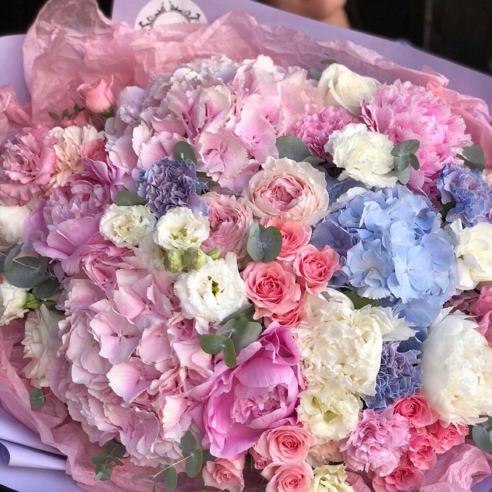 Категорий: Гвоздики, Гортензии, Кустовые розы, Лизиантусы, Пионовидные розы, Розы