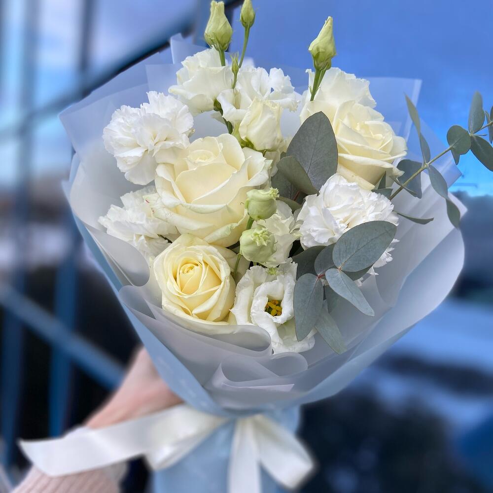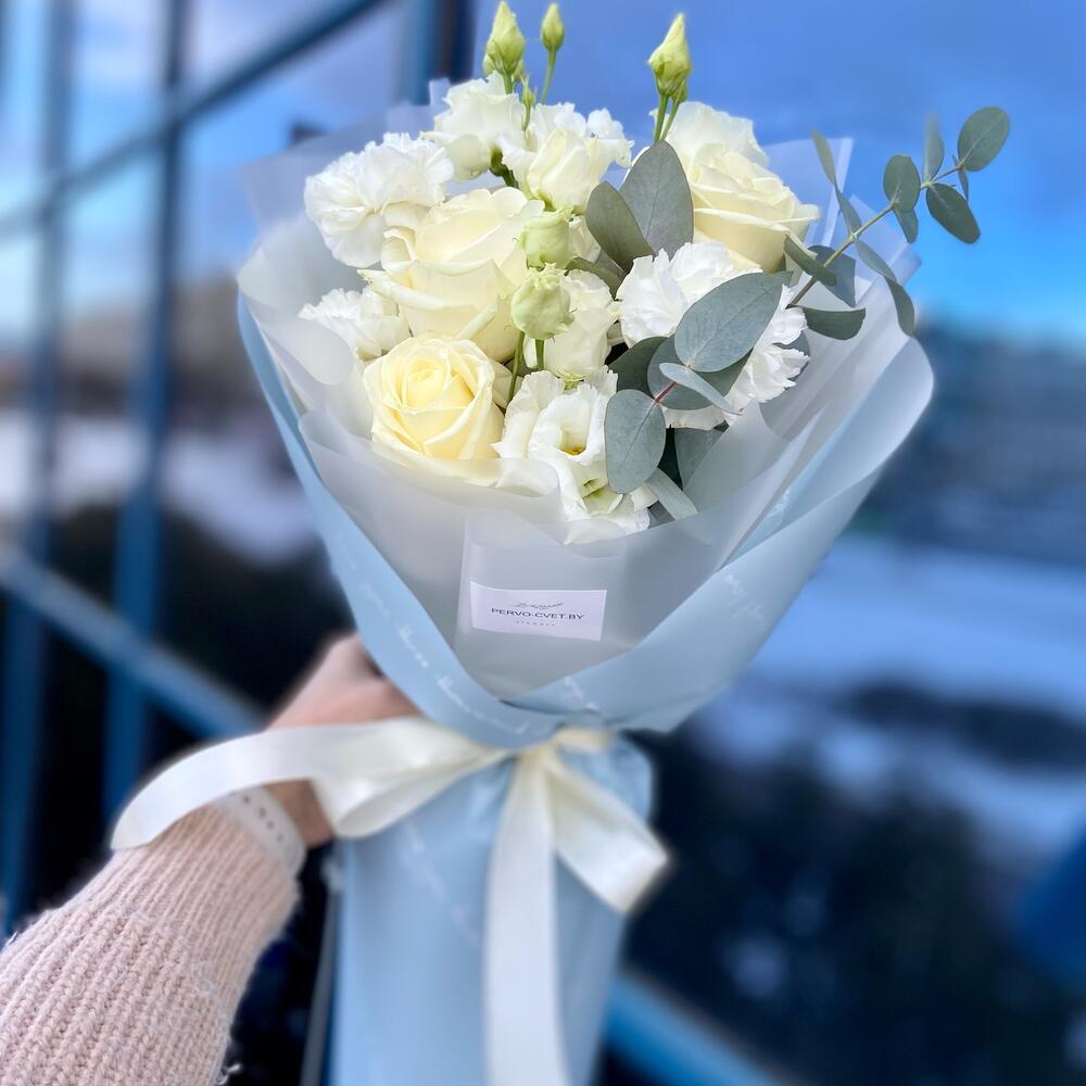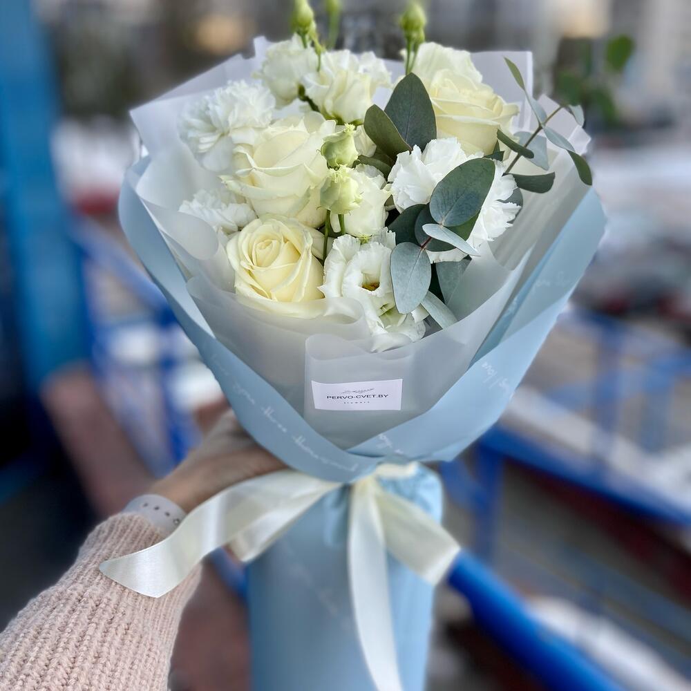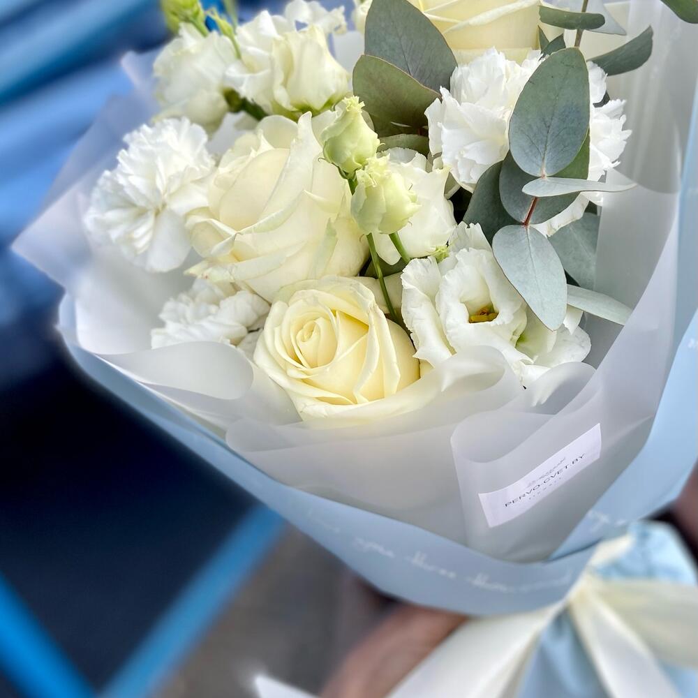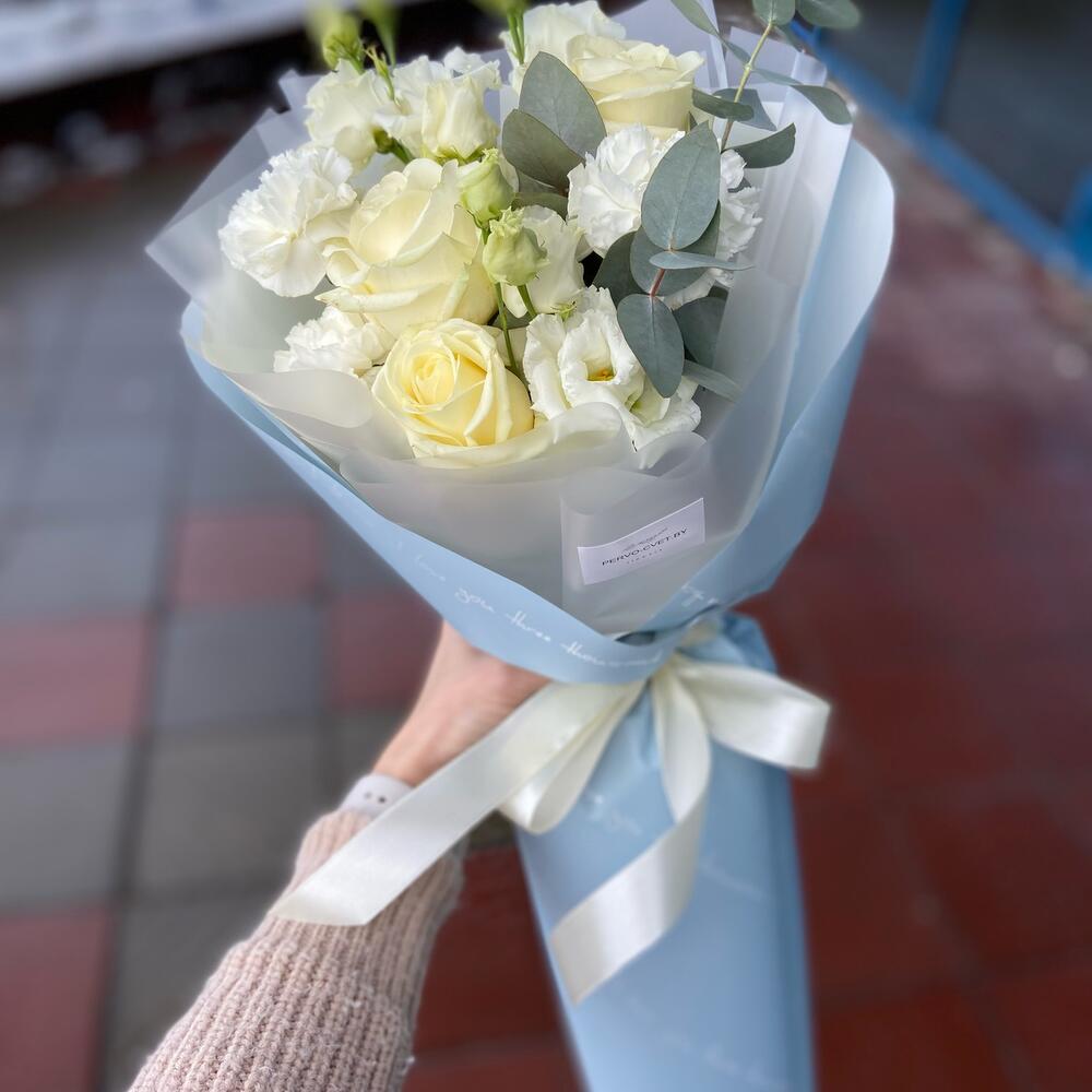Гвоздики, Кустовые розы, Лизиантусы, Пионовидные розы, Розы