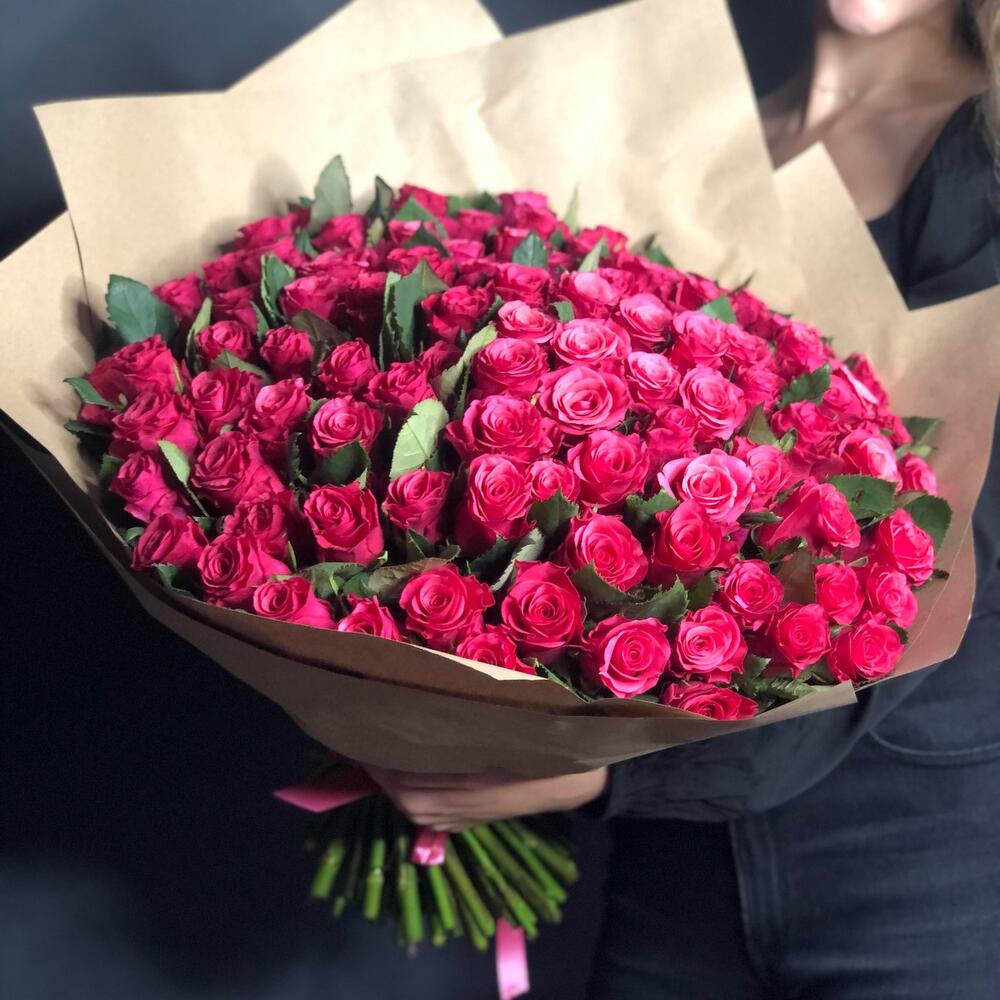 Роза – 101 шт.Крафт упаковка – 4 шт.