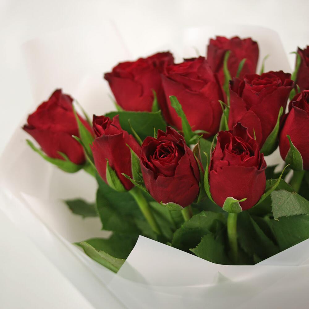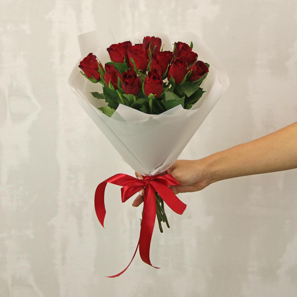 Букет из 11 красных роз 35-40 см (Кения) в стильной упаковке