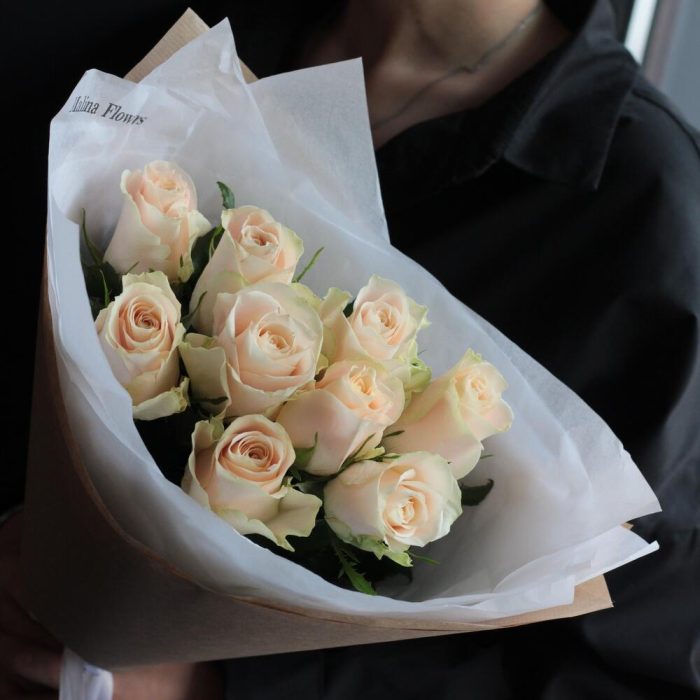 Букет из кремовой розы 25 штук