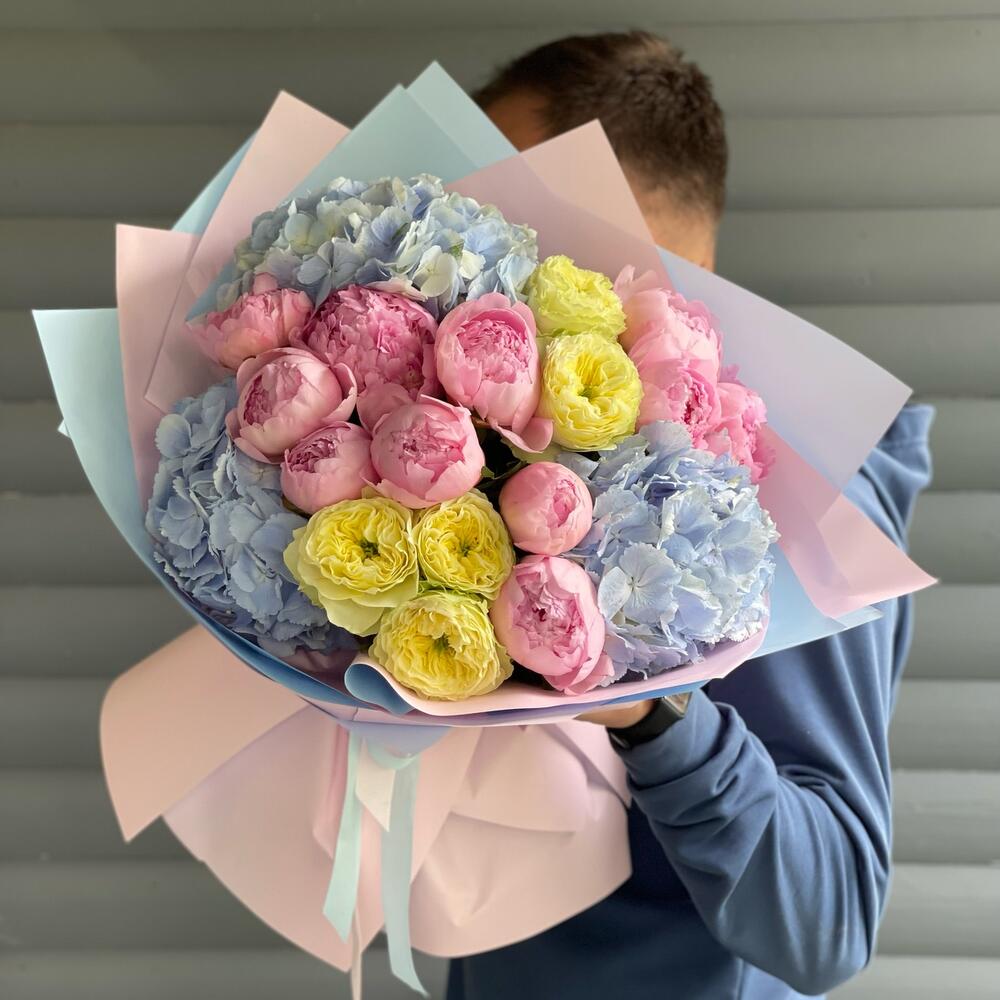 Гвоздики, Кустовые розы, Пионовидные розы, Розы