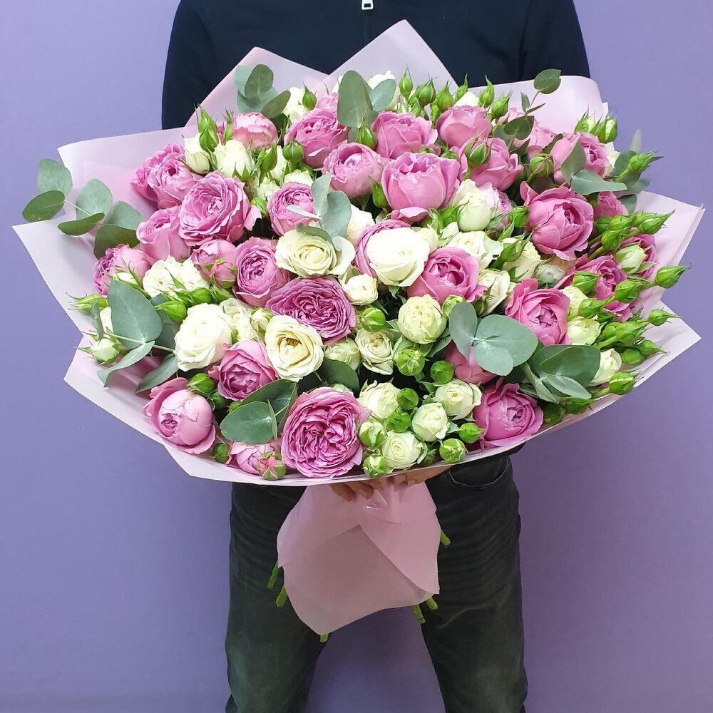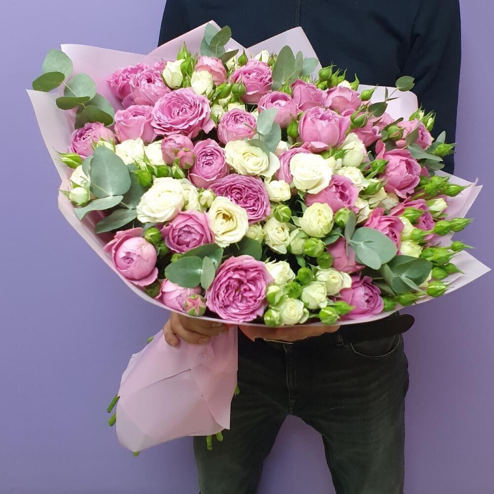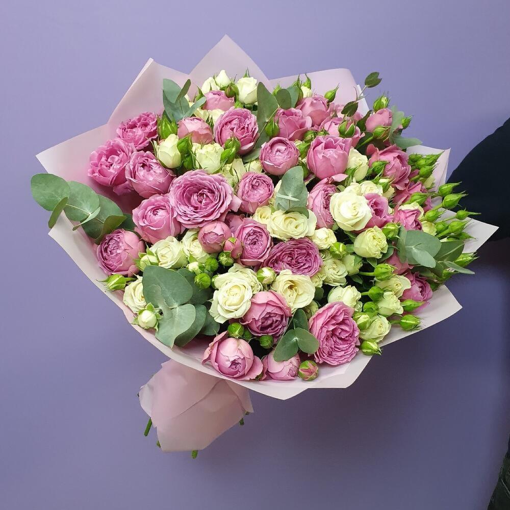 Категории: Кустовые розы, Пионовидные розы, Розы, Эвкалипт