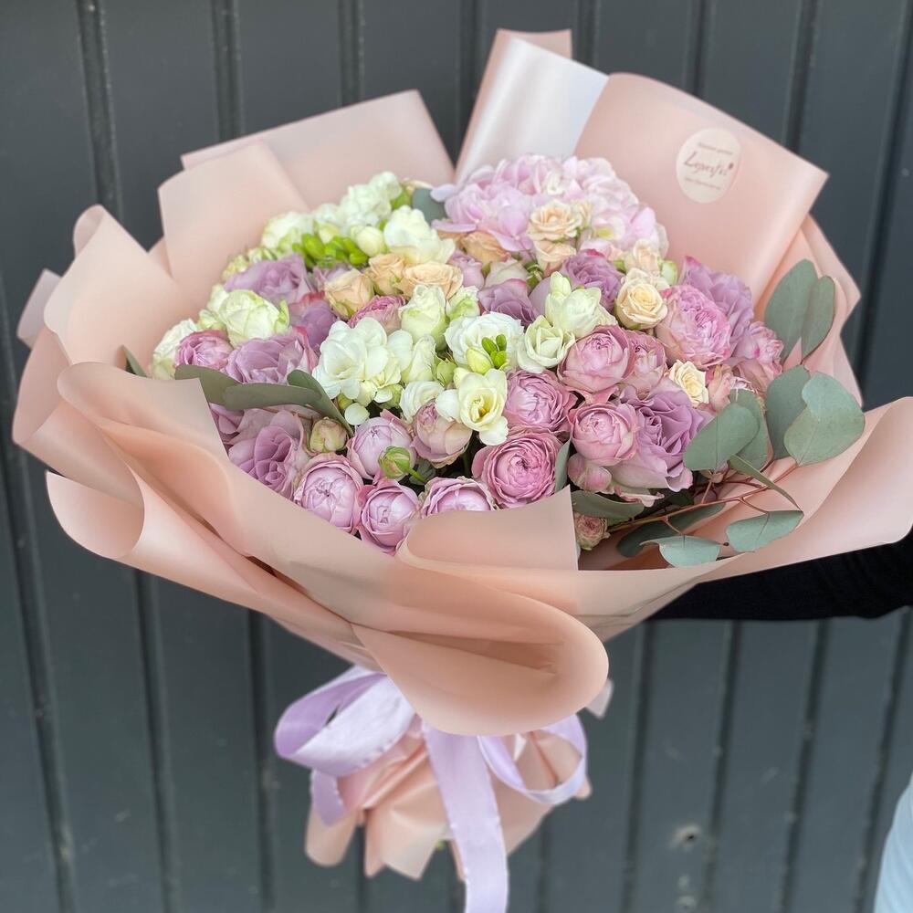 Кустовые розы, Лизиантусы, Розы, Сухоцвет