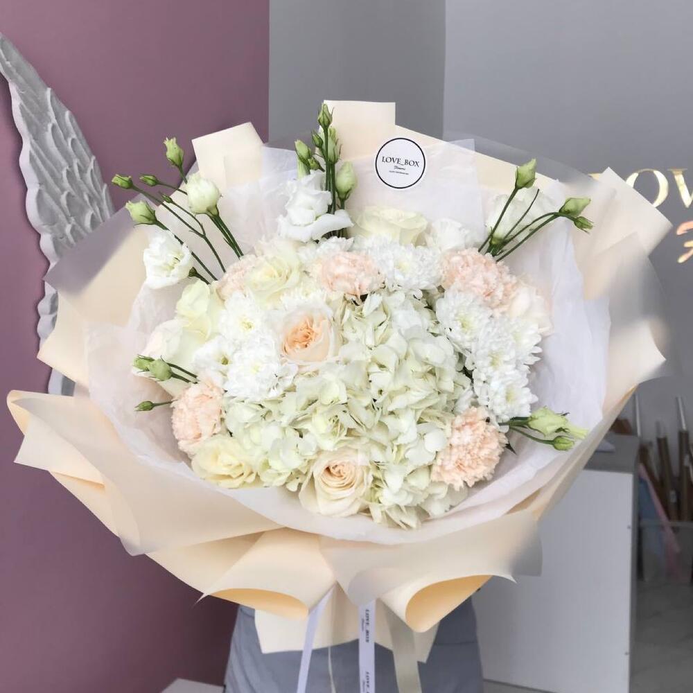 Категорий: Гвоздики, Гортензии, Лизиантусы, Розы, Хризантемы