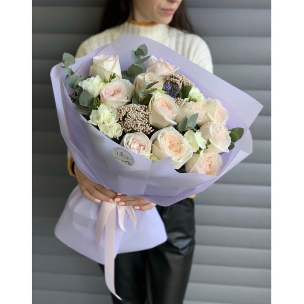 “Эвкалиптическая роскошь” гортензия и пионовидная кустовая роза