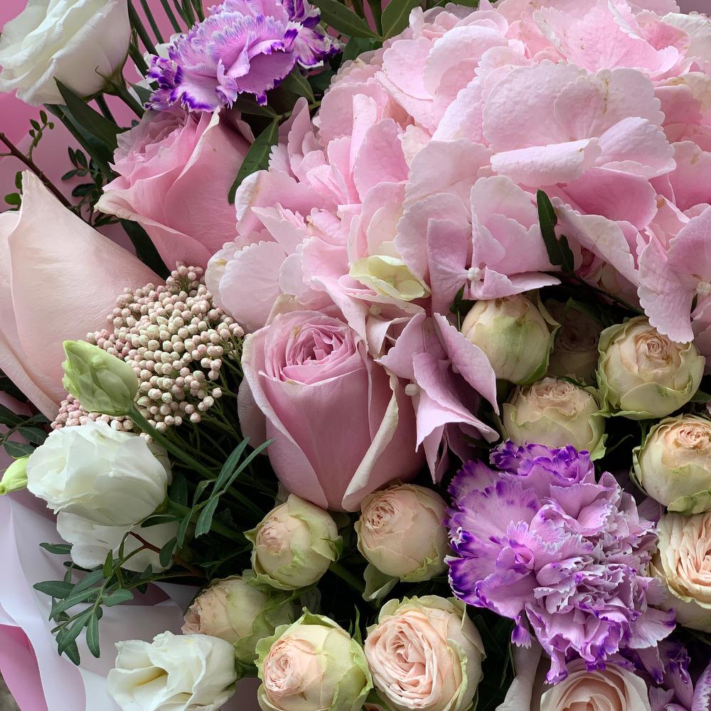 Категории: Гвоздики, Гортензии, Лизиантусы, Розы