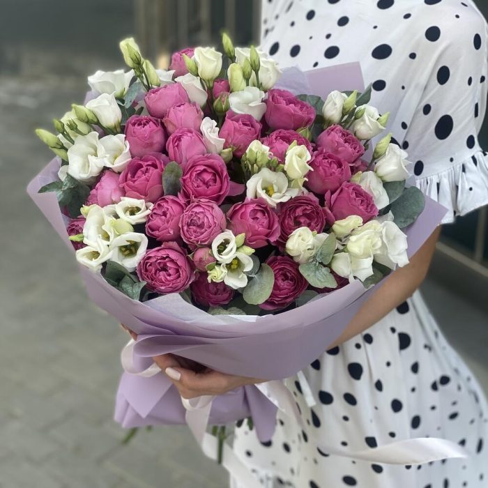 Букет Романтика из пионовидных роз и эустомы