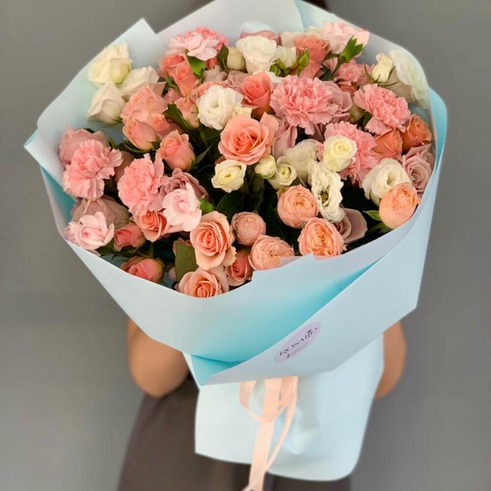 Гвоздики, Кустовые розы, Лизиантусы, Пионовидные розы, Розы