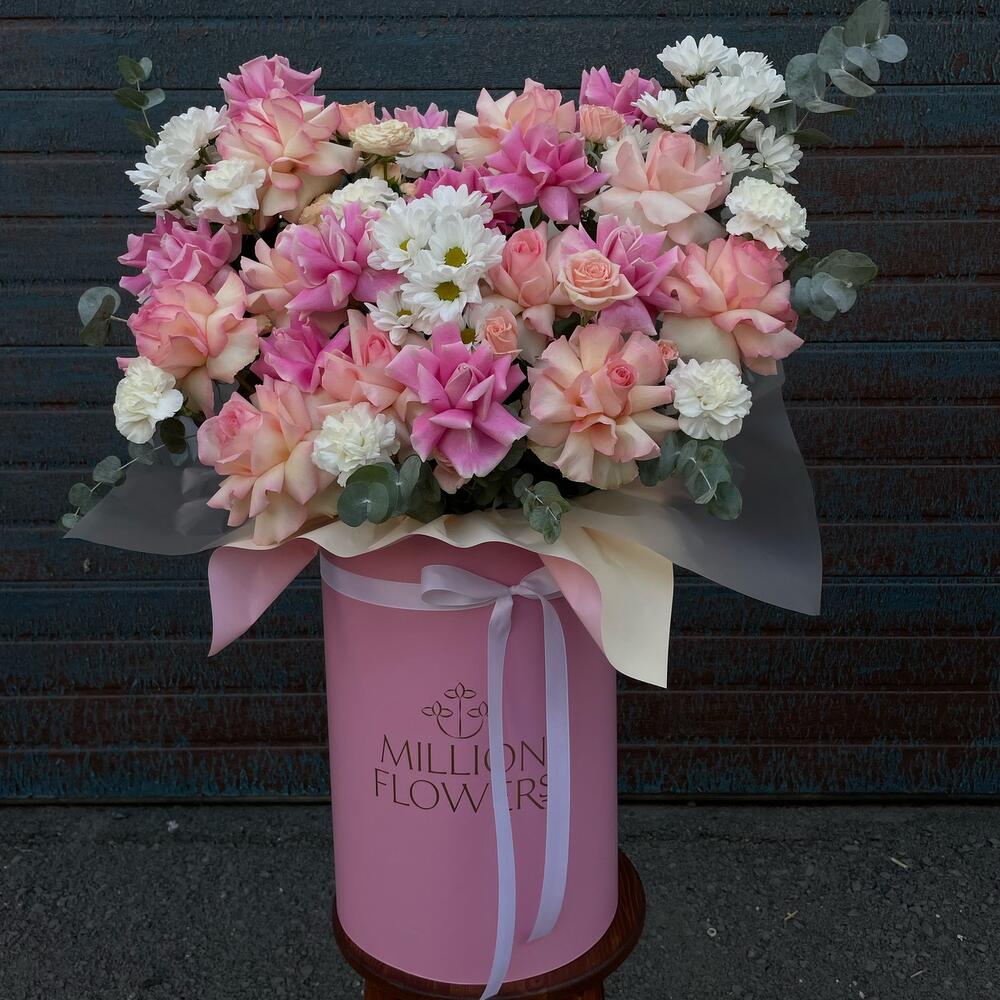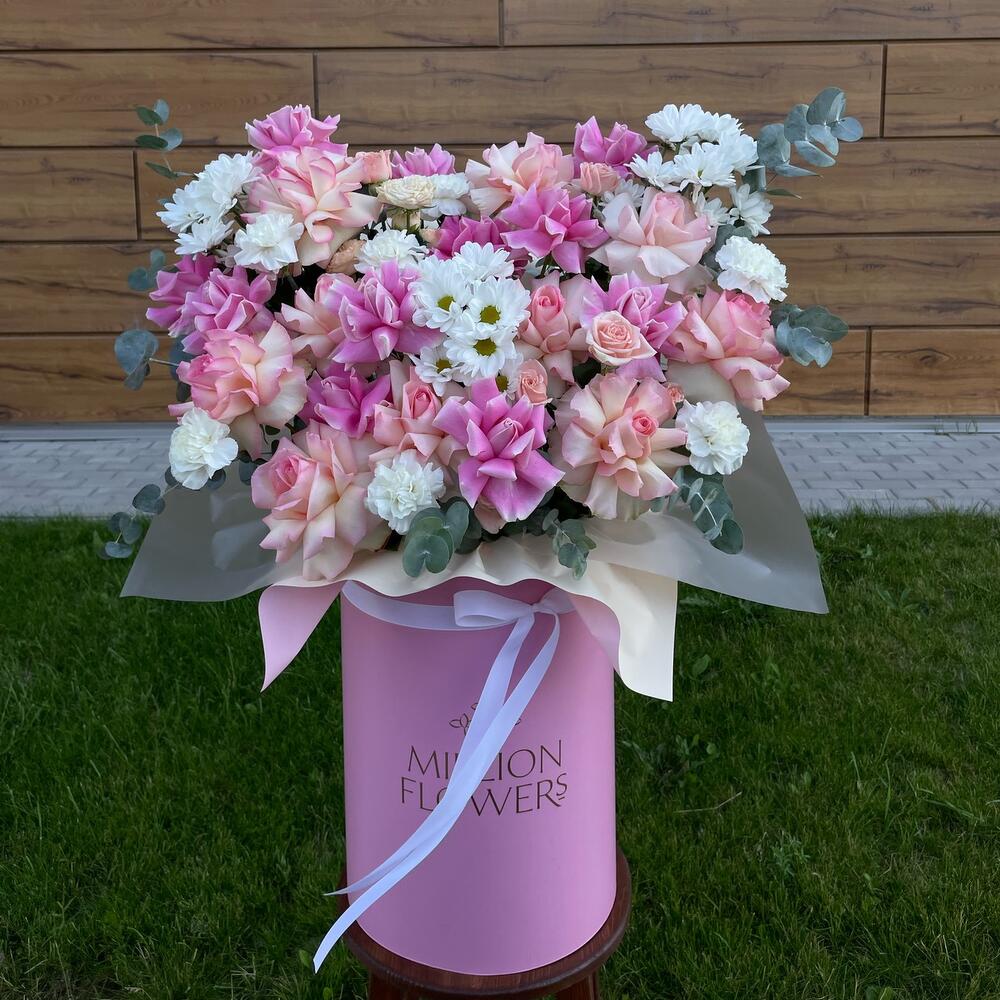 "В твоих глазах": нежная шляпная коробка с французскими розами