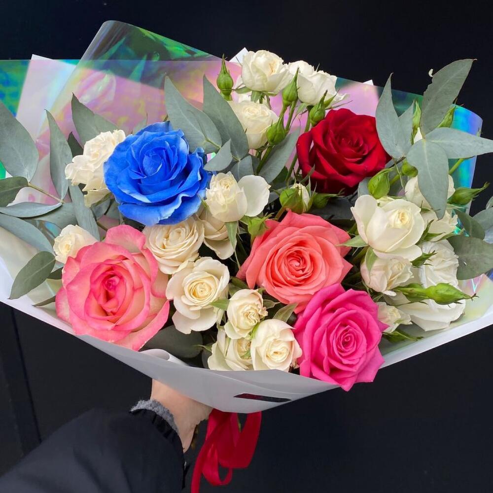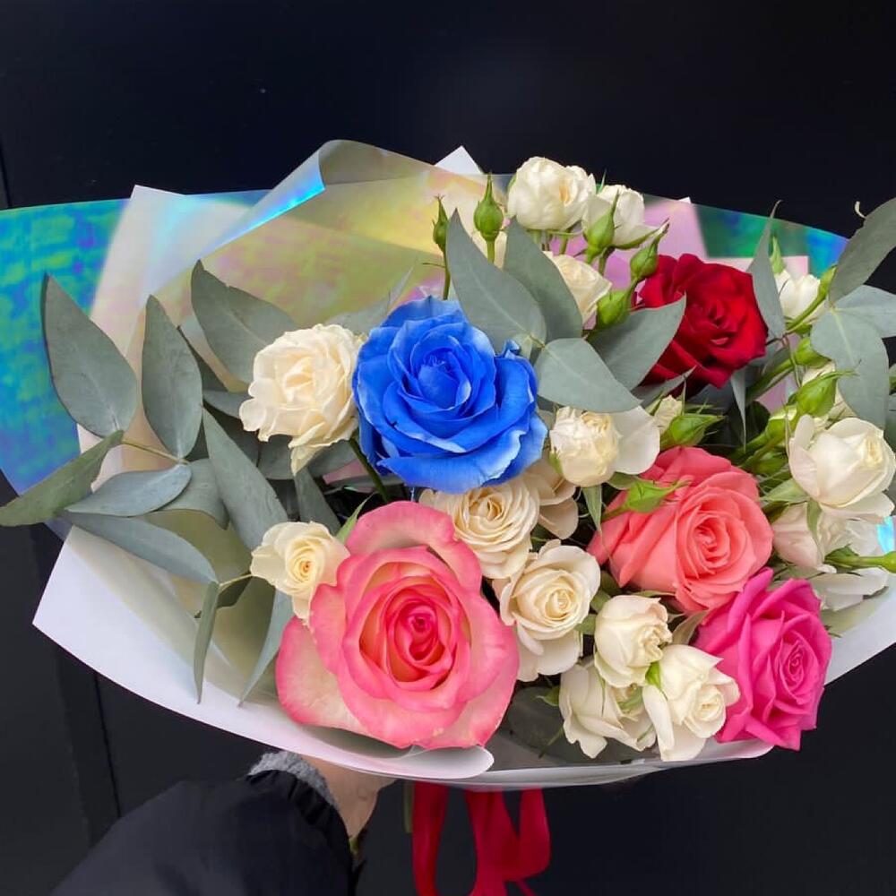 Гвоздики, Лизиантусы, Розы, Тюльпаны