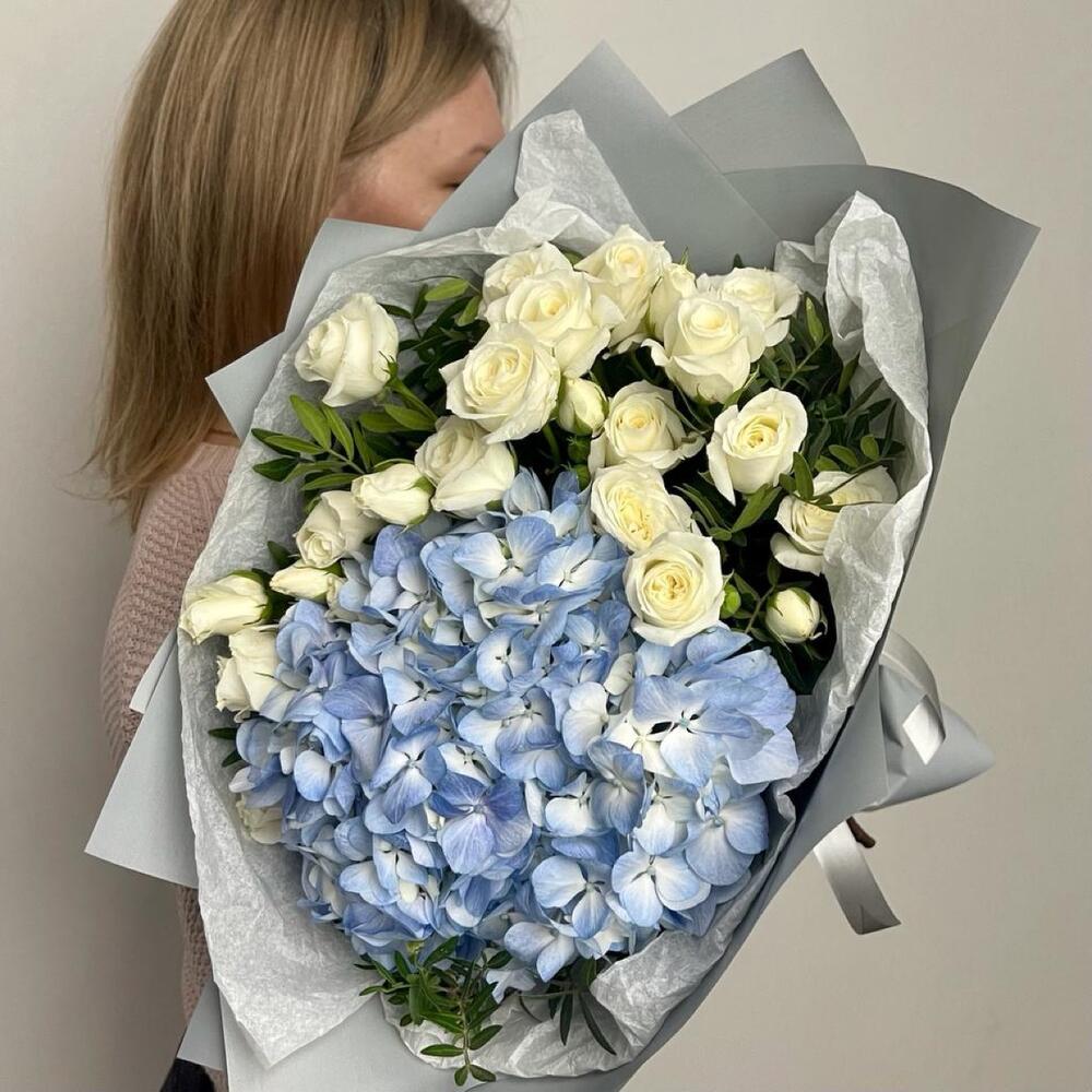 “Эвкалиптическая роскошь” гортензия и пионовидная кустовая роза