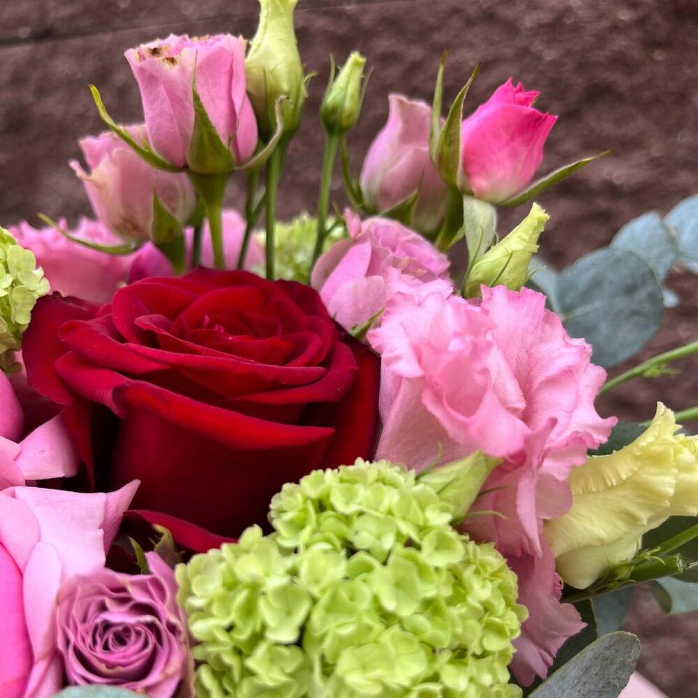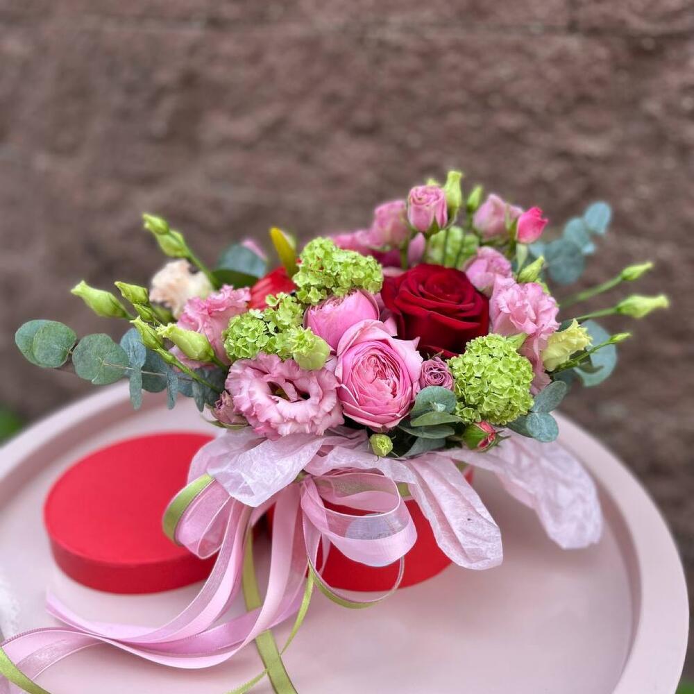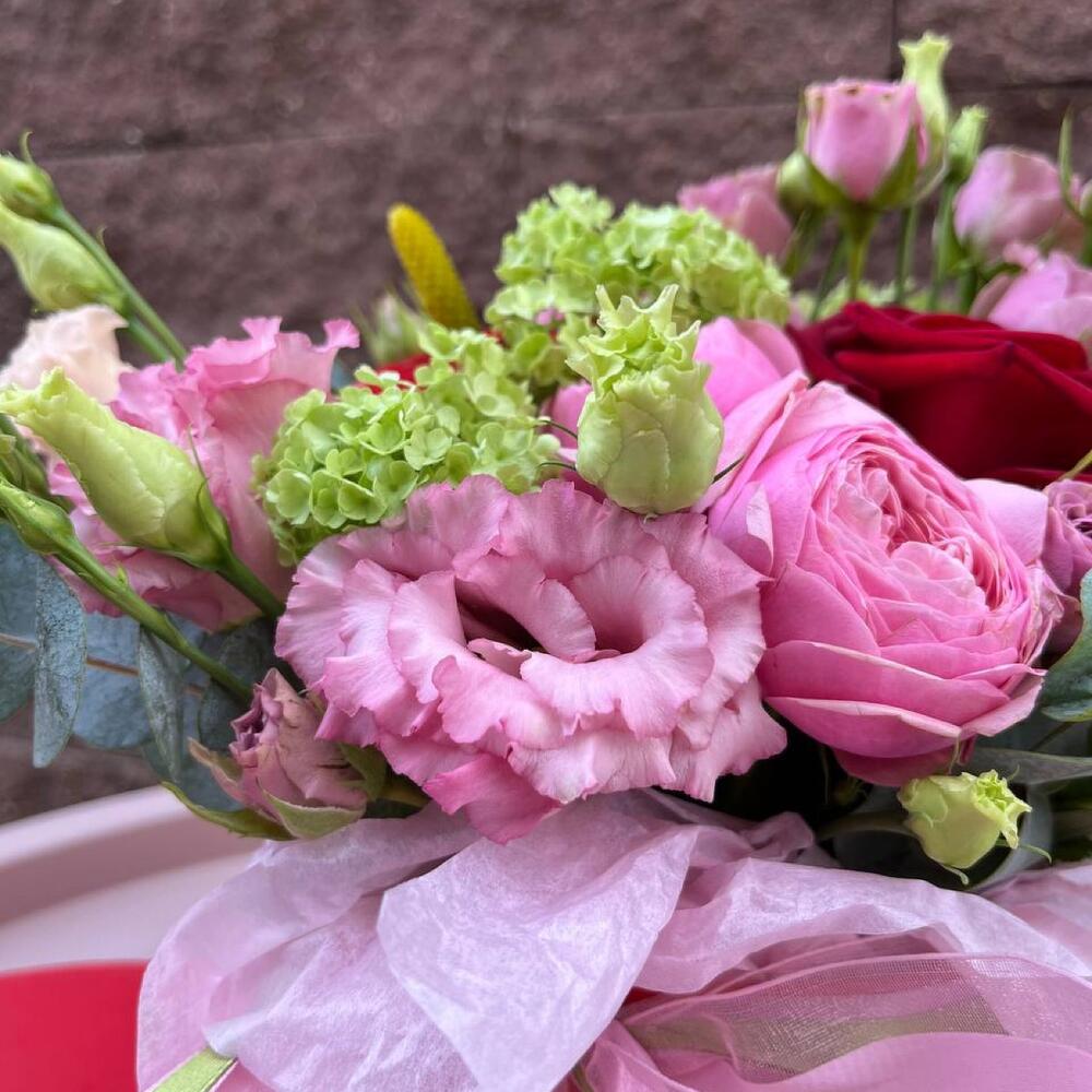 Альстромерии, Кустовые розы, Лизиантусы, Пионовидные розы, Розы, Ромашки