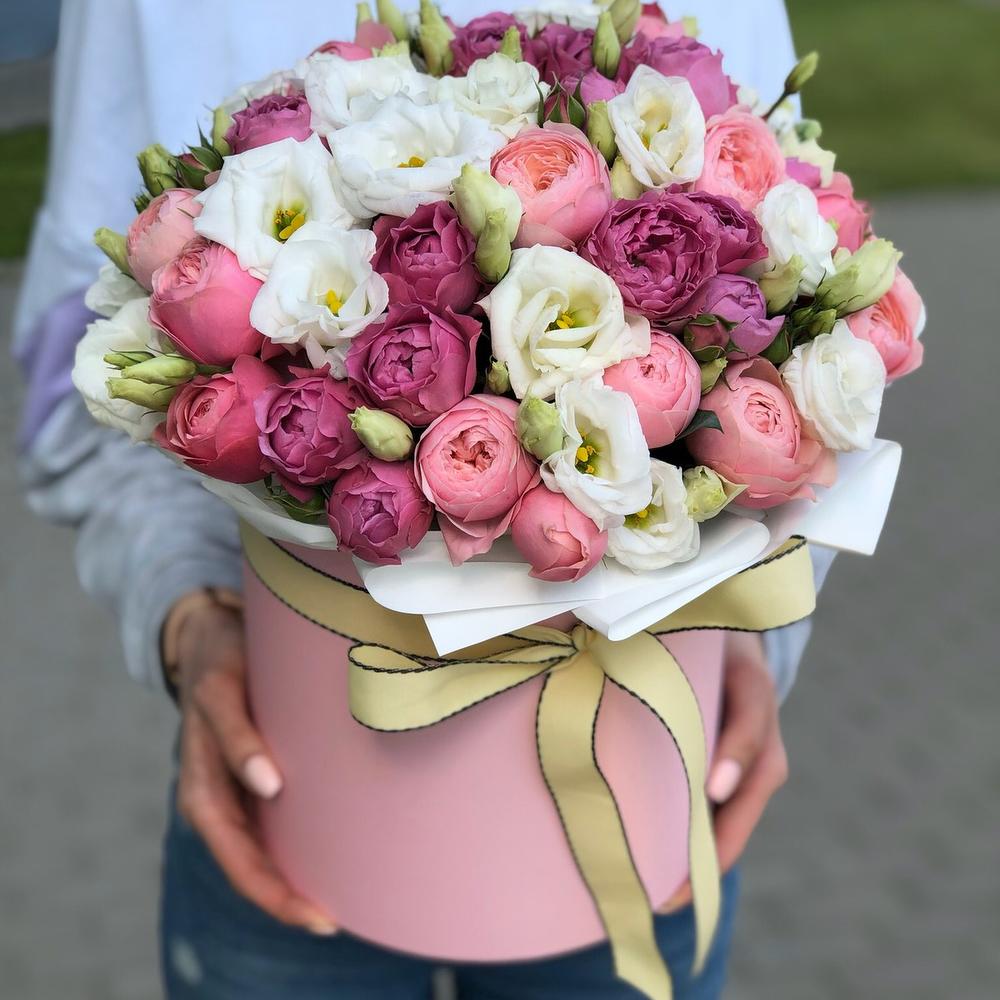 Коробка из пионовидных роз и эустомы!