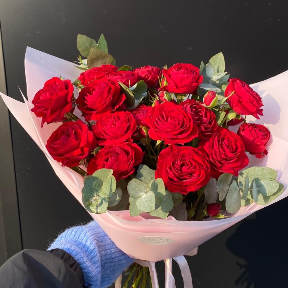 Альстромерии, Кустовые розы, Лизиантусы, Пионовидные розы, Розы, Ромашки