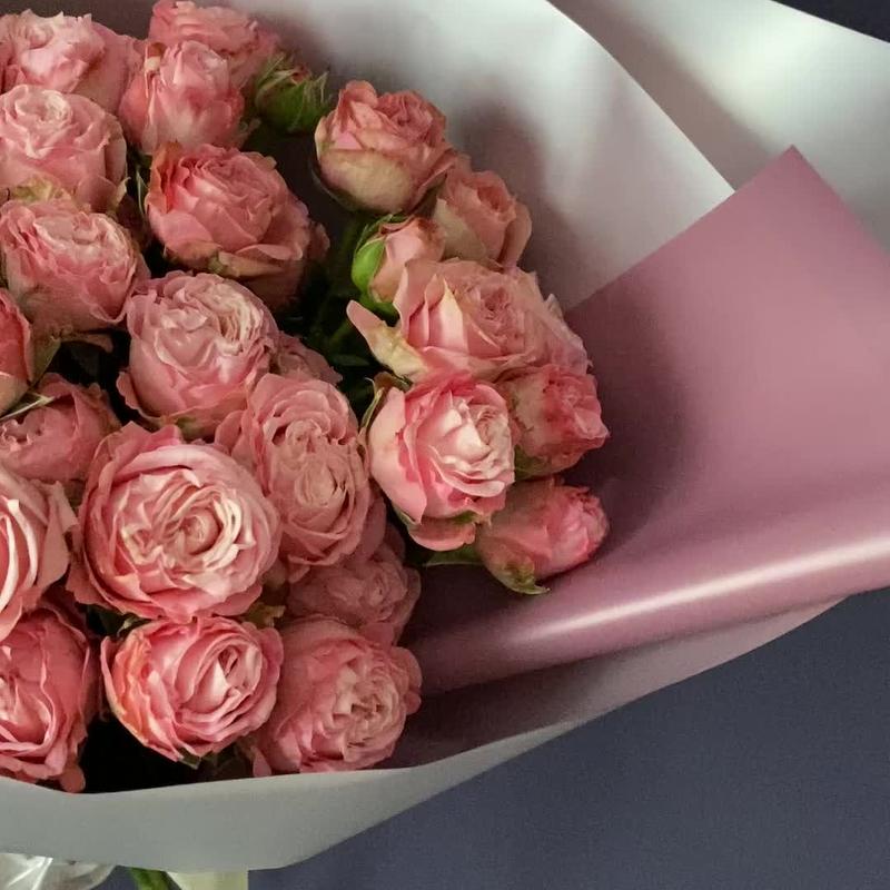 Лента атласная – 1 шт.Роза кустовая пионовидная – 9 шт.