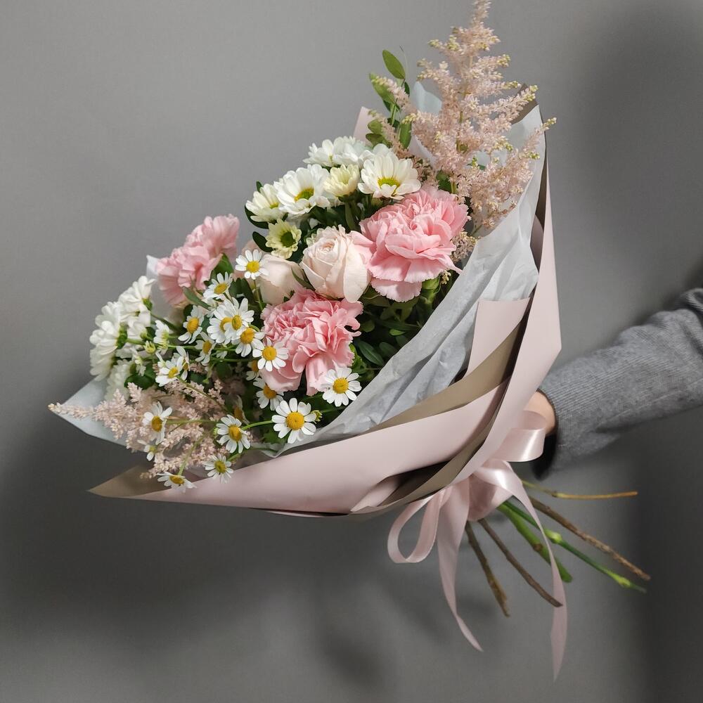 Гвоздики, Кустовые розы, Пионовидные розы, Розы